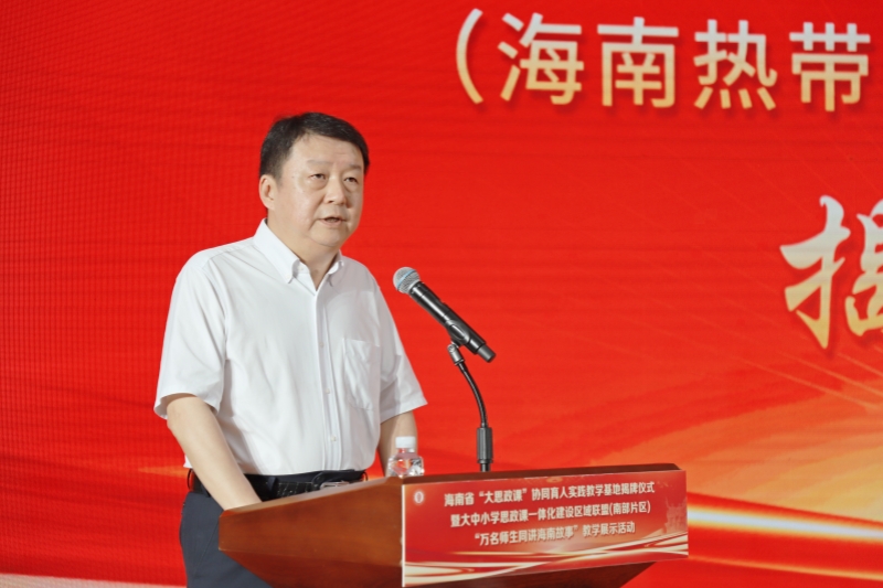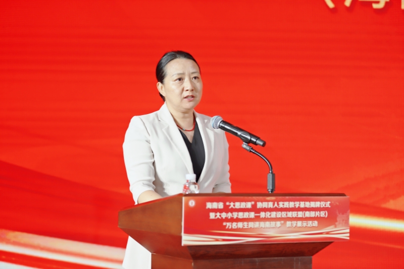 崔莹在讲话中指出,在习近平总书记对新时代学校思政课建设作出重要指示一周年之际,为海南省“大思政课”实践教学基地之一的海南热带海洋学院南海文化博物馆基地授牌,这是我们深入贯彻落实习近平总书记关于学校思政课建设重要指示精神和全国两会关于“推进大中小学思政课一体化改革创新”部署要求的自觉行动,也是推动思政小课堂和社会大课堂深度融合、加快构建海南自贸港“大思政课”工作格局的重要举措。她强调,建好用好“大思政课”实践教学基地,要注重协同联动,合力构建育人“大生态”,要深挖特色资源,聚力建好教学“大课堂”,要创新方式方法,努力打造育人“大品牌”,逐步形成学生时时可参与、处处能共鸣的思政教育场域。