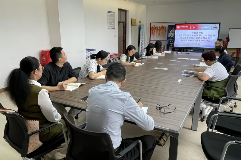 3月27日下午,外国语学院党委在人文楼312会议室召开深入贯彻中央八项规定精神学习教育读书班第1次学习会。外国语院领导班子成员、各党支部支委委员、院办、学工办、团委等负责人参加学习会。外国语学院党委副书记许振光主持学习会。